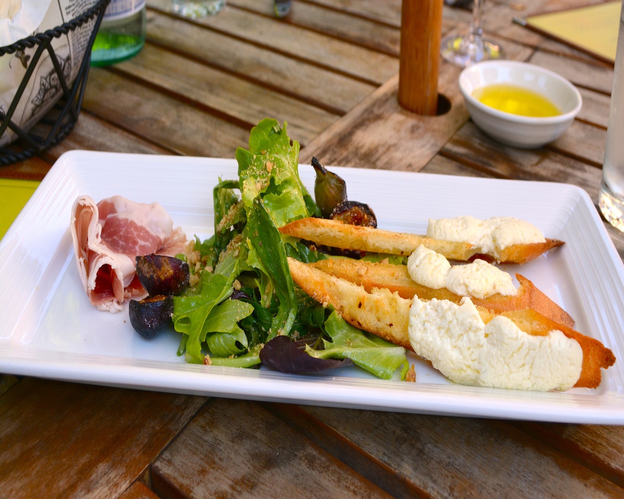 Dani and I chose to sit outside because it was a beautiful summer evening and I just love the outdoor seating area, we started with the most delectable Flat bread , we were immediately excited for the rest of the meal, we anticipated everything else being just as enjoyable.