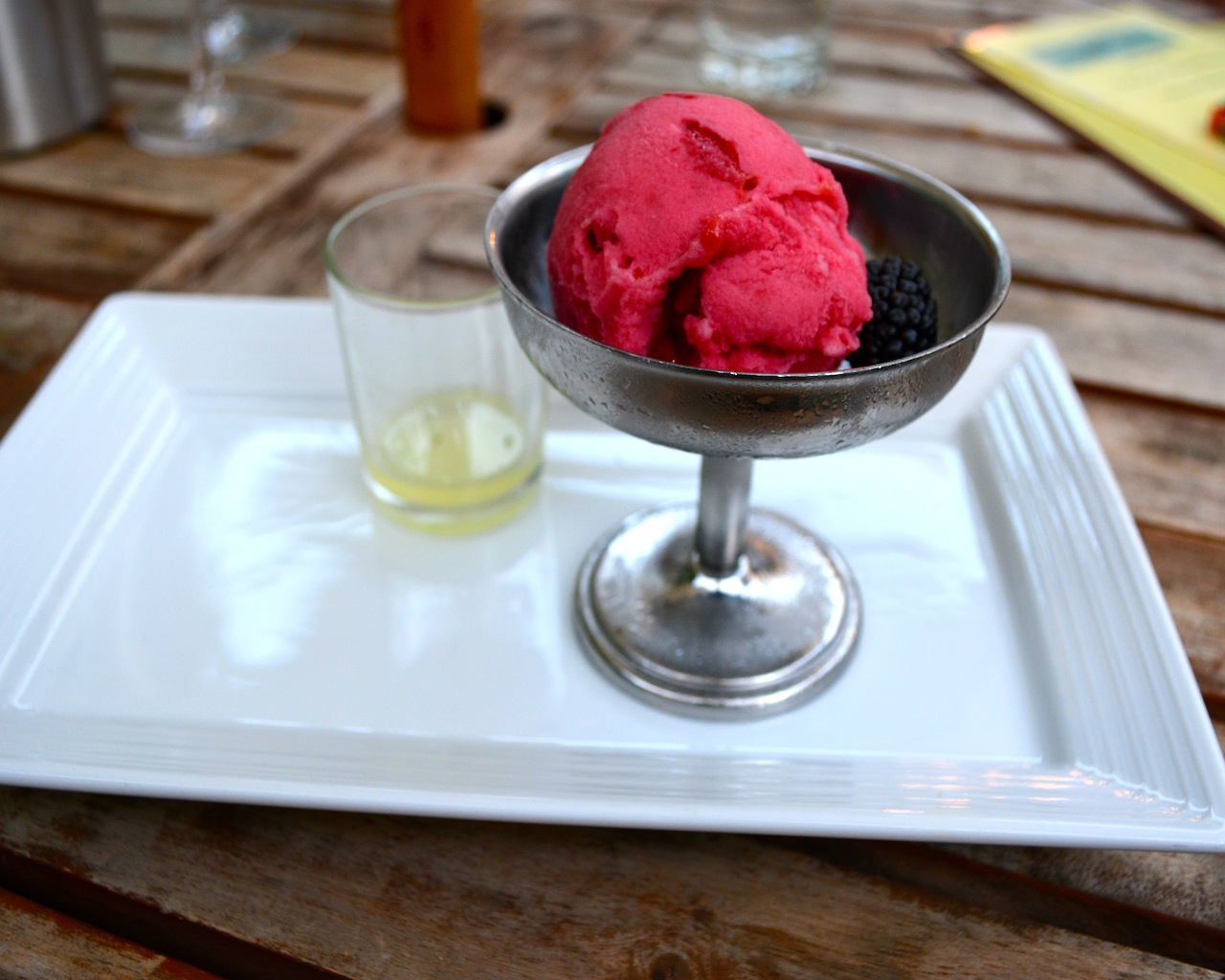 I was full and selected a lighter dessert, I went with a Sorbet served with Limoncello, wow, I poured the limoncello into the sorbet, REALLY NICE…