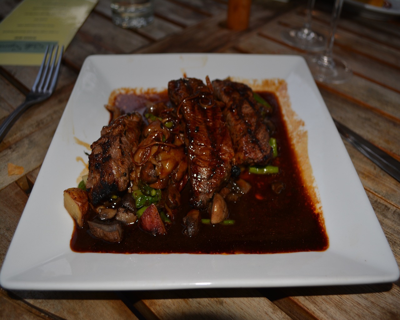 I am ashamed to say that I was flying high from the previous dishes that I failed to write the exact name of the steak dish….Although I rarely eat red meat, I tasted this dish and this meat was perfectly cooked, well-seasoned, tender and the juices were heavenly. Dani could eat a cow so she was very happy. A definite thumbs up…